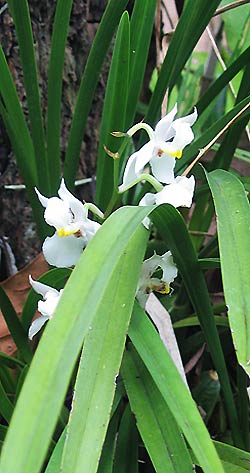 This is a white flowering orchid that is not so showy as to be coveted, but wonderful